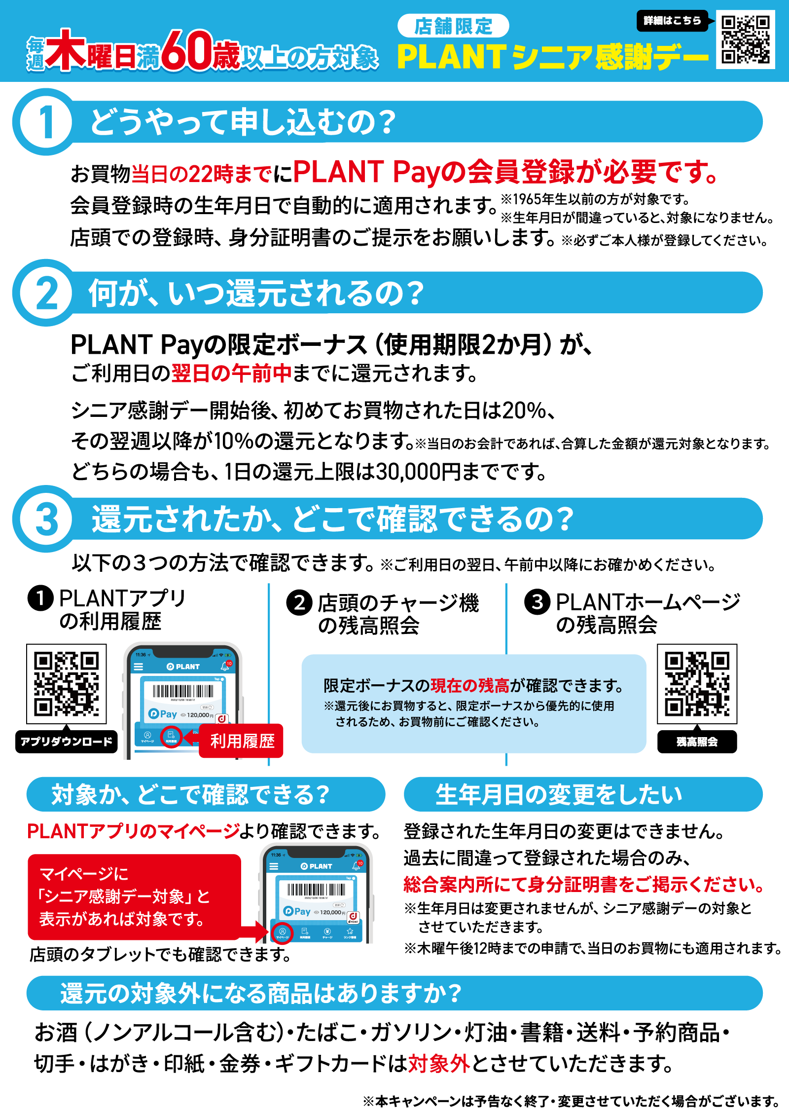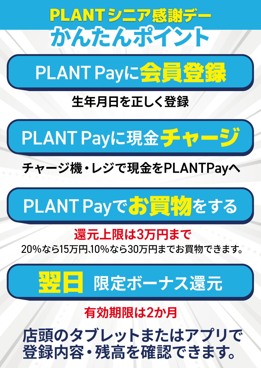 - ※お買物当日23時までにPLANTPayの会員登録が必要です。