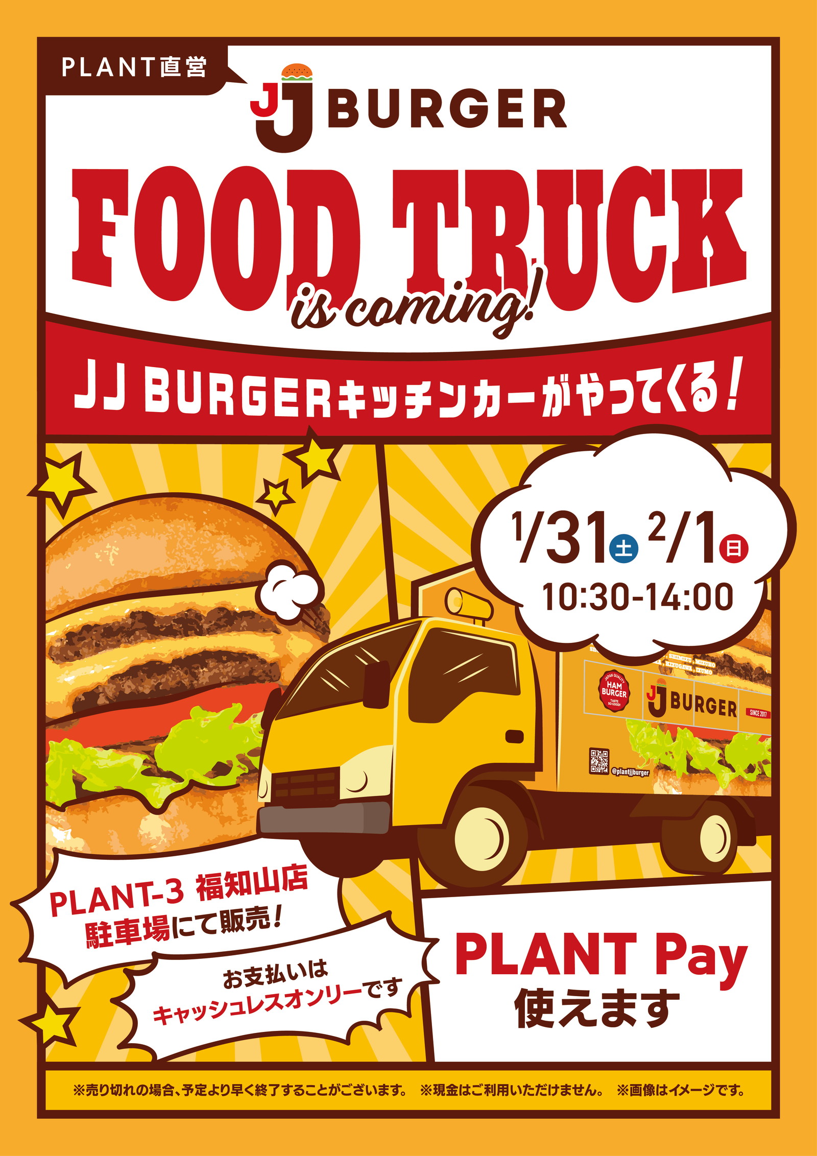 【予告:福知山店】1/31(土)~2/1(日) JJバーガーキッチンカーがPLANT-3 福知山店にやってくる!