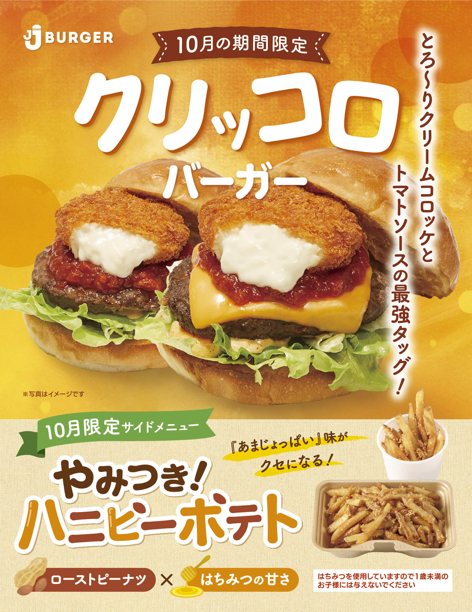 小さいお子様や小食の方にピッタリ。JJバーガーの半量サイズでも、味は変わらず本格派!