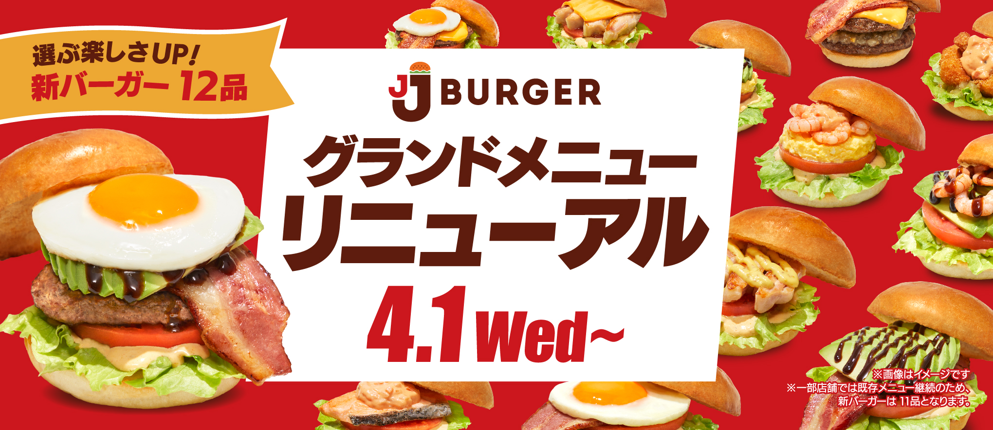 JJ BURGERが4月1日にグランドメニューをリニューアル 本格派からヘルシー志向まで、多彩なラインナップの新バーガーが登場