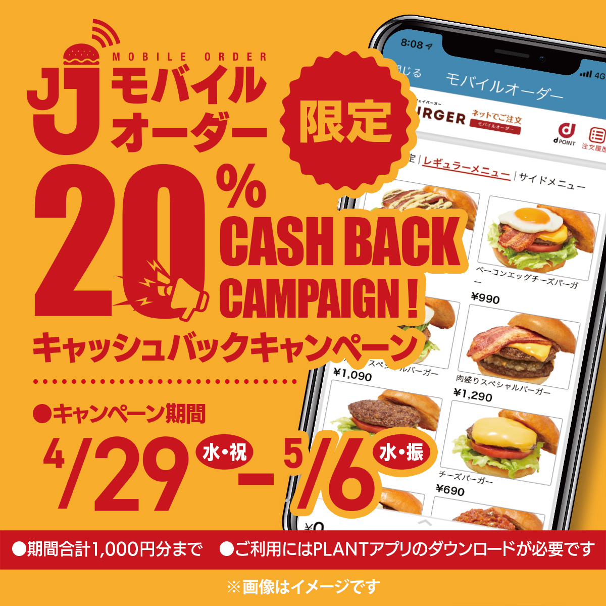 『JJモバイルオーダー限定 20%キャッシュバックキャンペーン!』