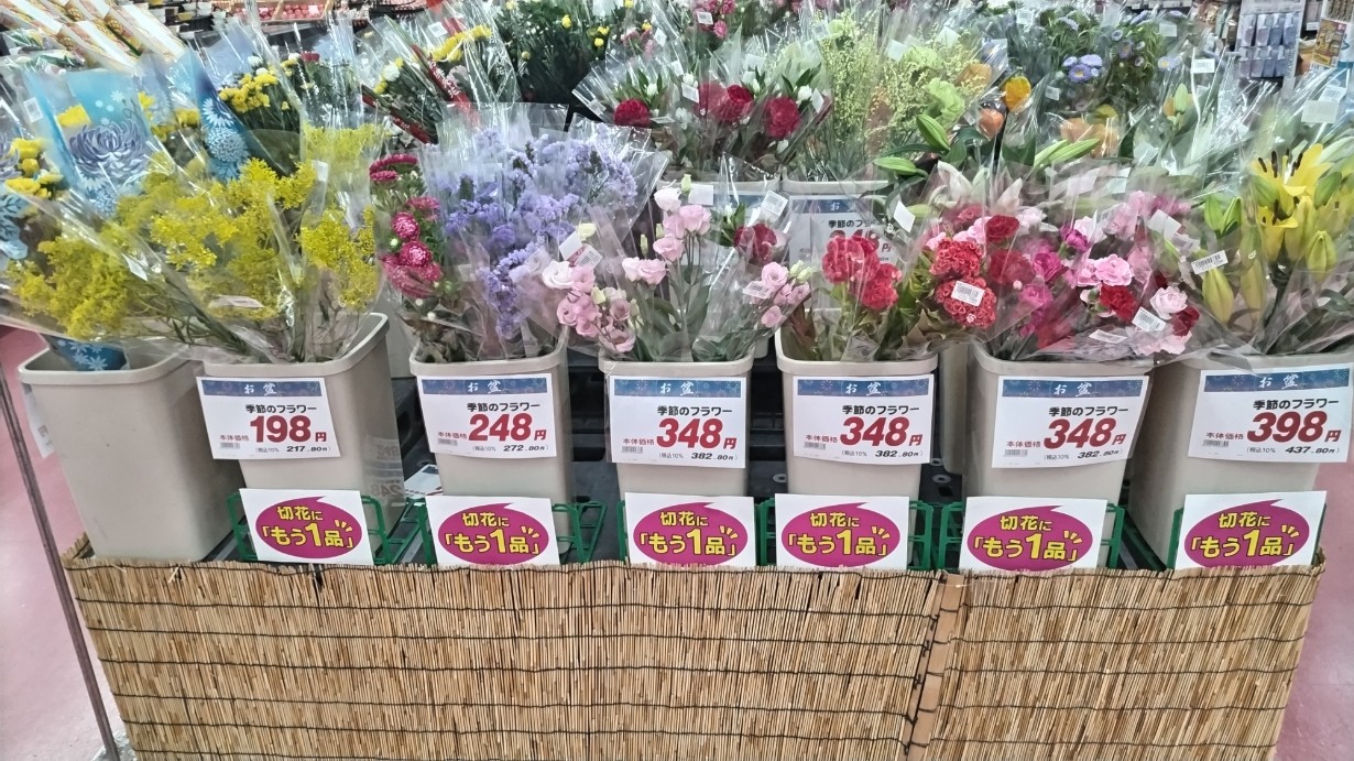 お盆のお墓参りに切り花展開中(; ・`д・´)
