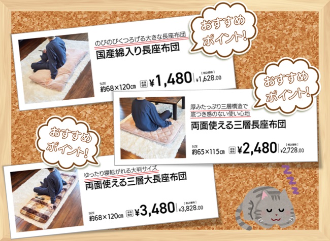 サイズはコンパクトな通常サイズと寝転んで使える大きいサイズを