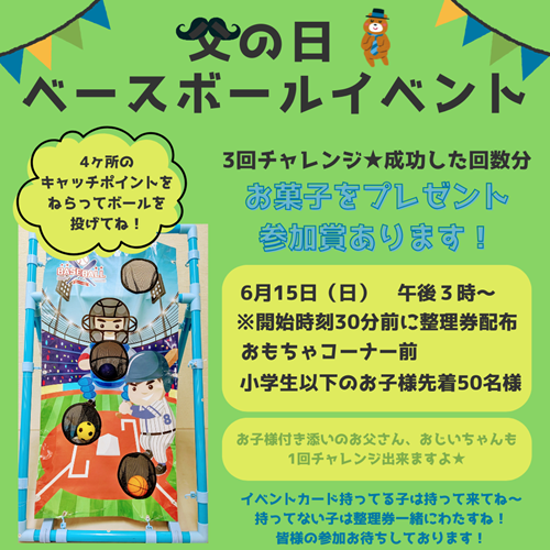 6月15日 日曜日 父の日 午後3時~ おもちゃコーナー前で