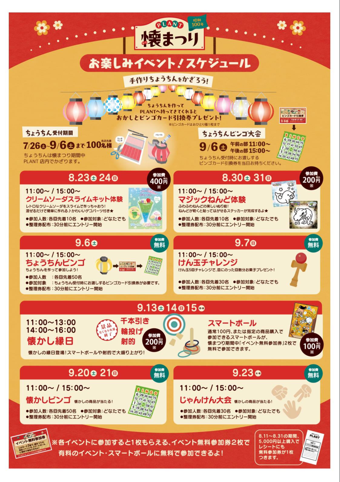 ・8/11(月・祝)から8/31(日)まで、5,000以上(税込み)をお買い上げごとに1枚「イベント無料参加券」が発行されます