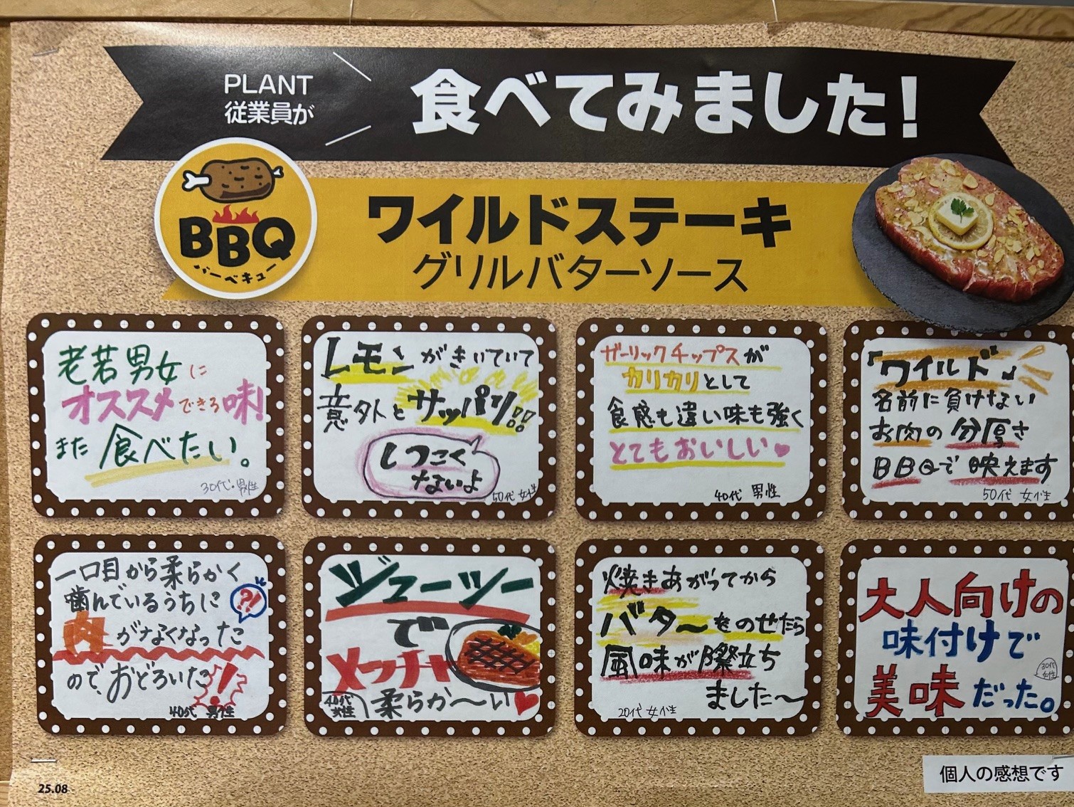 従業員の食べてみましたボードを参考にしてね!