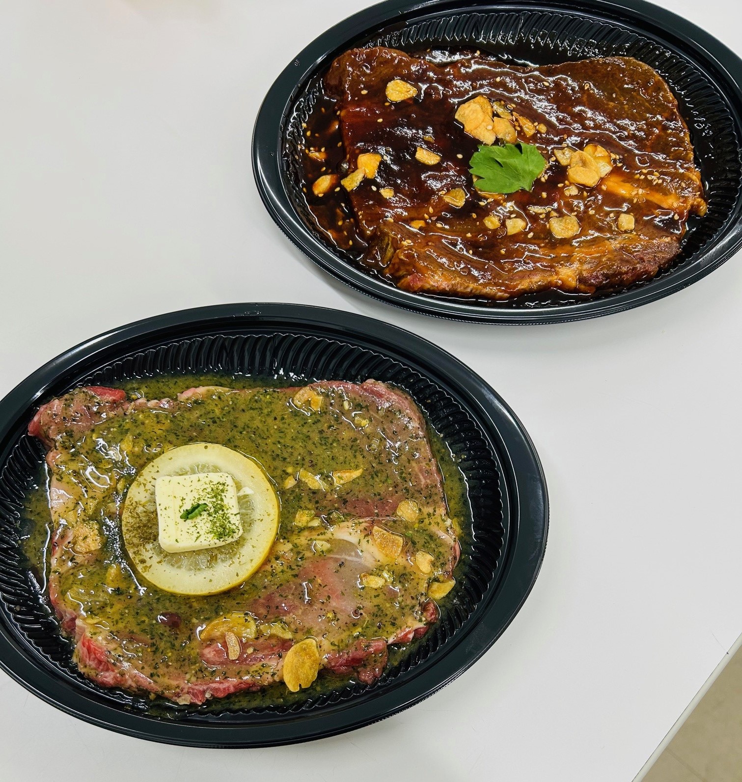 ワイルドポークステーキ(塩ごま油ガーリック)「写真上」