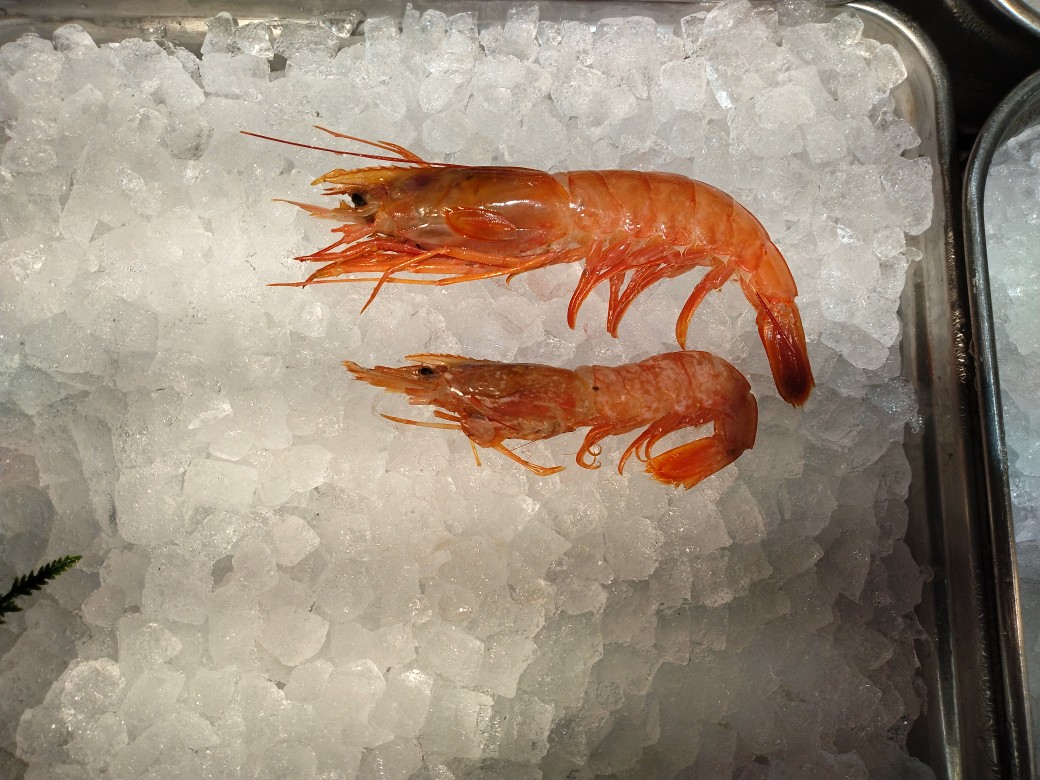 下側が通常の赤エビ、上側が大サイズになります!めっちゃデカい!