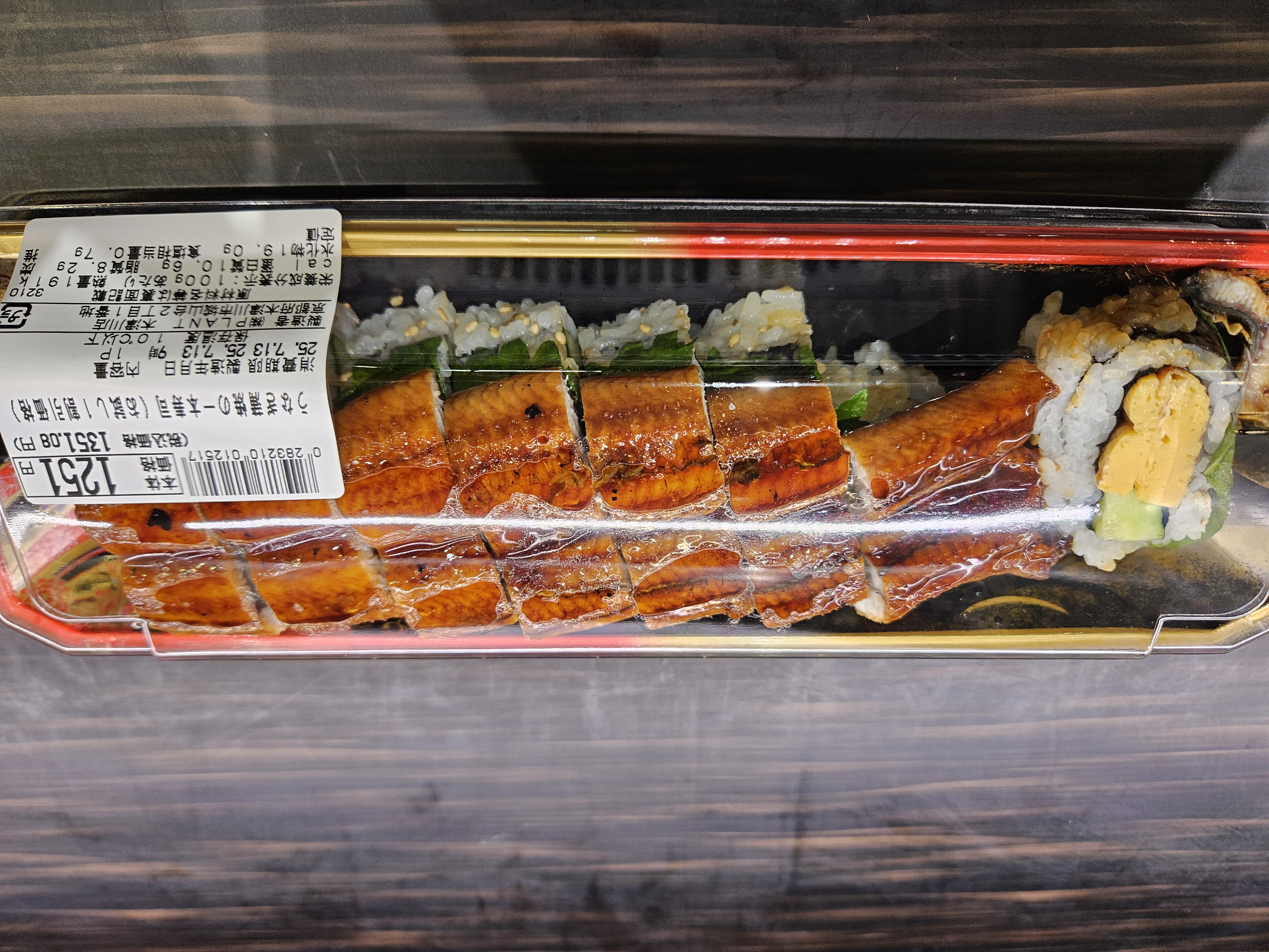 うなぎ蒲焼の一本寿司は、玉子焼き、キュウリ、大葉が入ってボリューム満点!