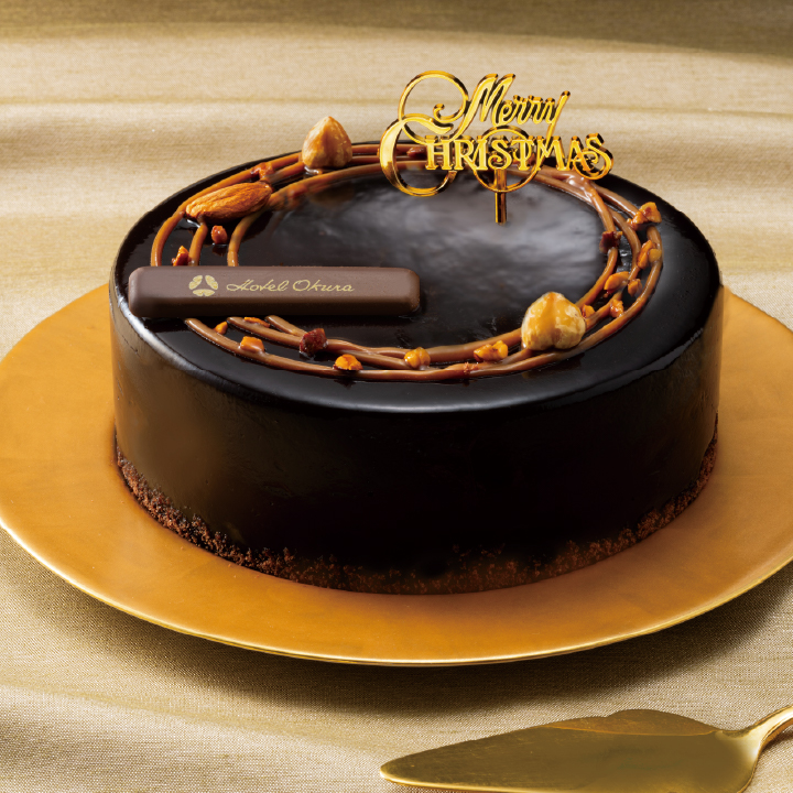 カカオ分69%のチョコレートを使用したショコラムース、ヘーゼルナッツショコラシャンティ、キャラメルソースを重ね、食感のアクセントにアーモンド、香りづけにコアントローを使用した贅沢なショコラケーキです。