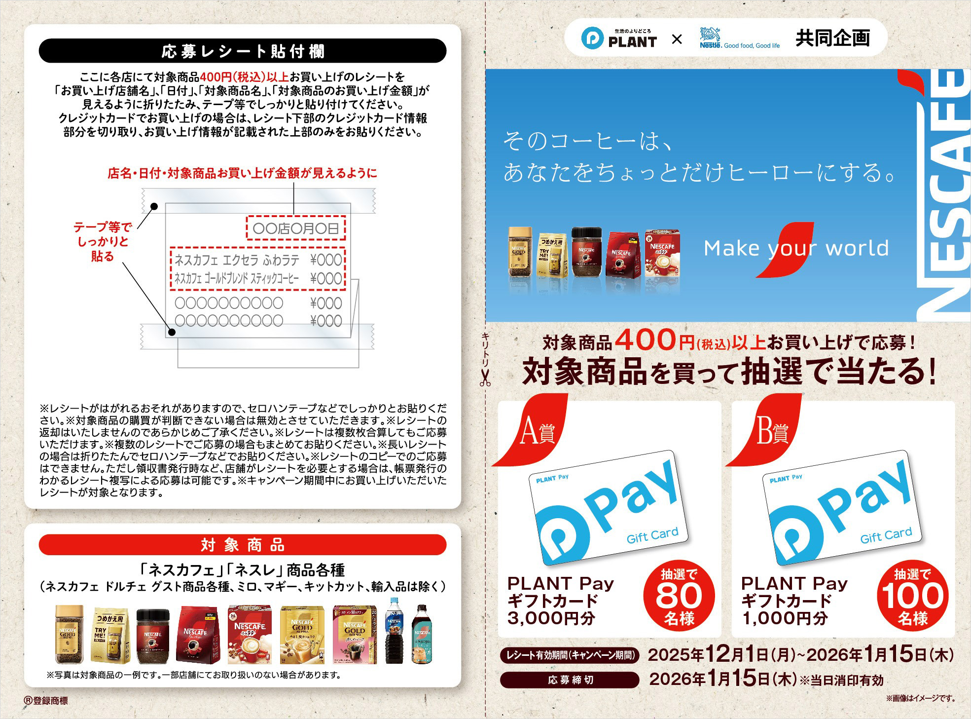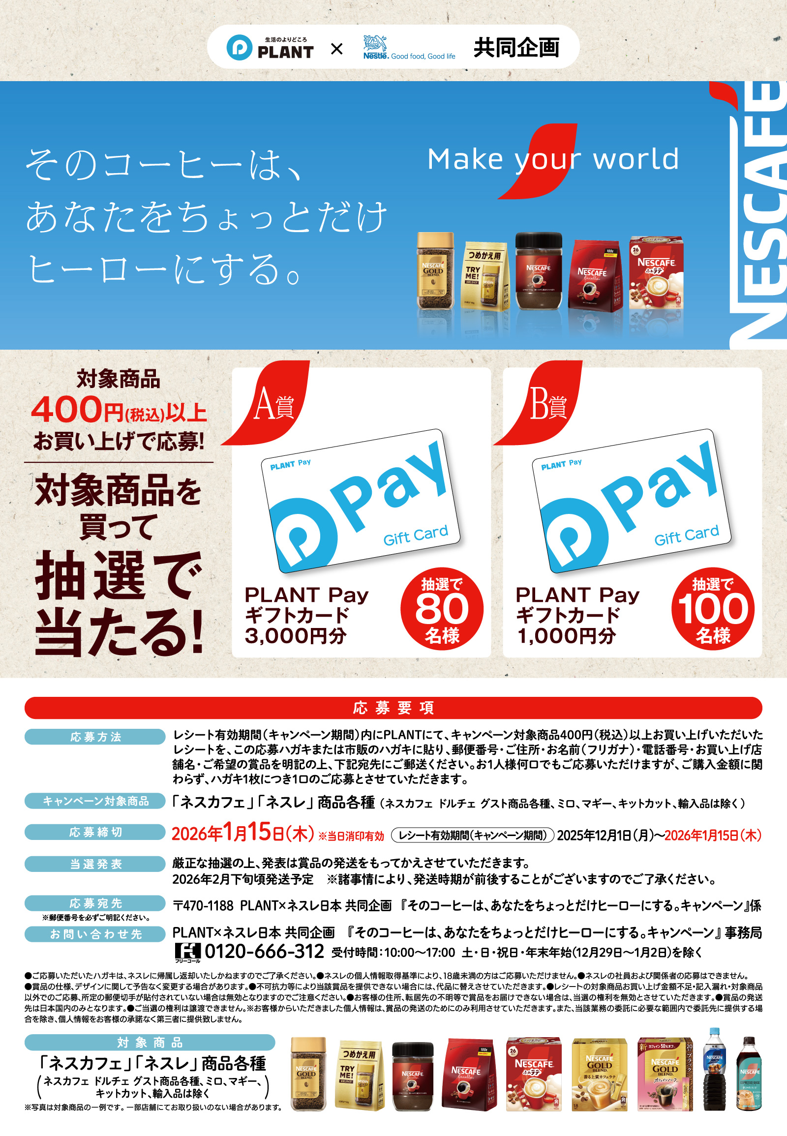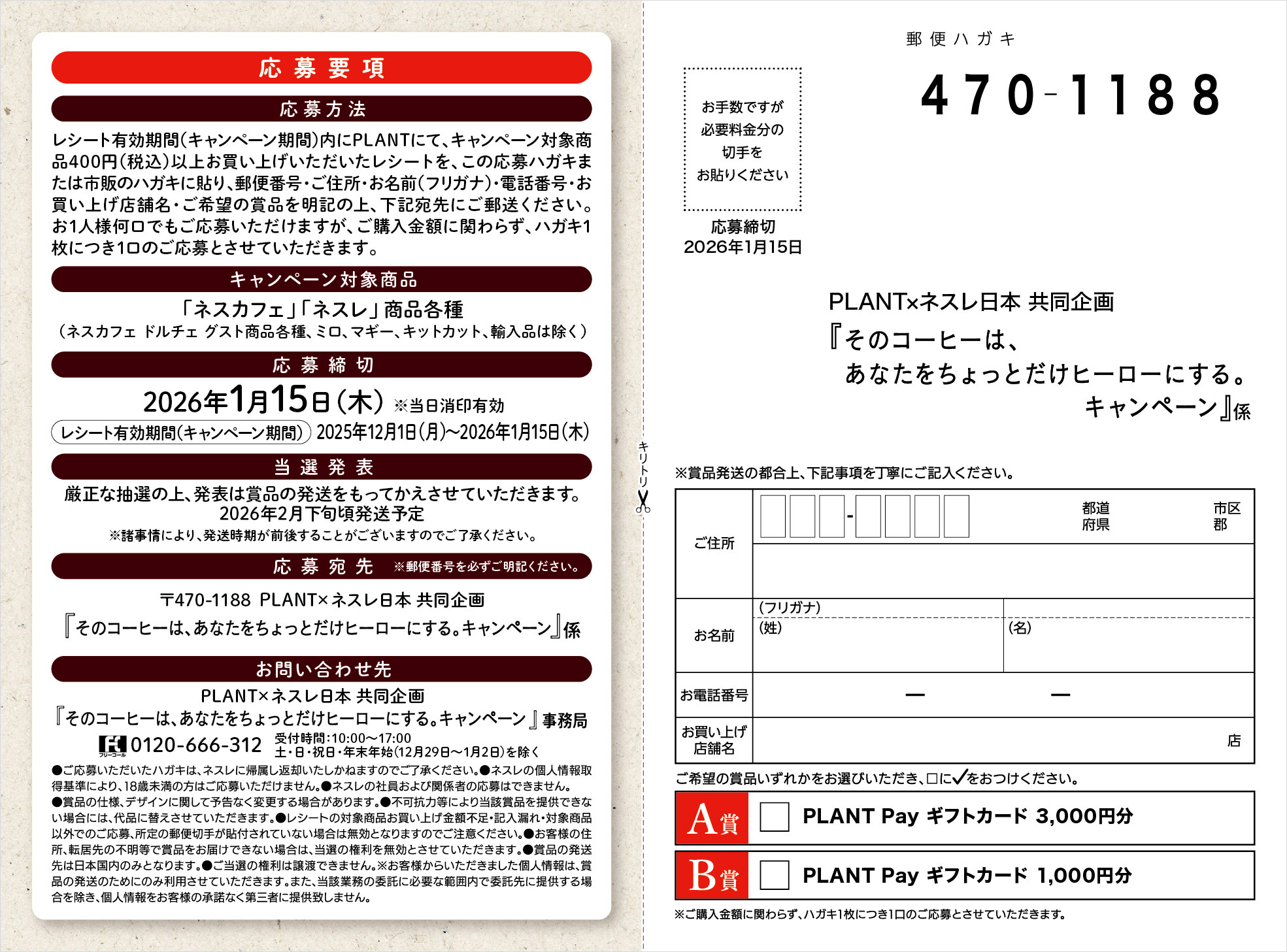 ご応募は店頭の応募はがき、または市販のはがきにてお願いいたします。