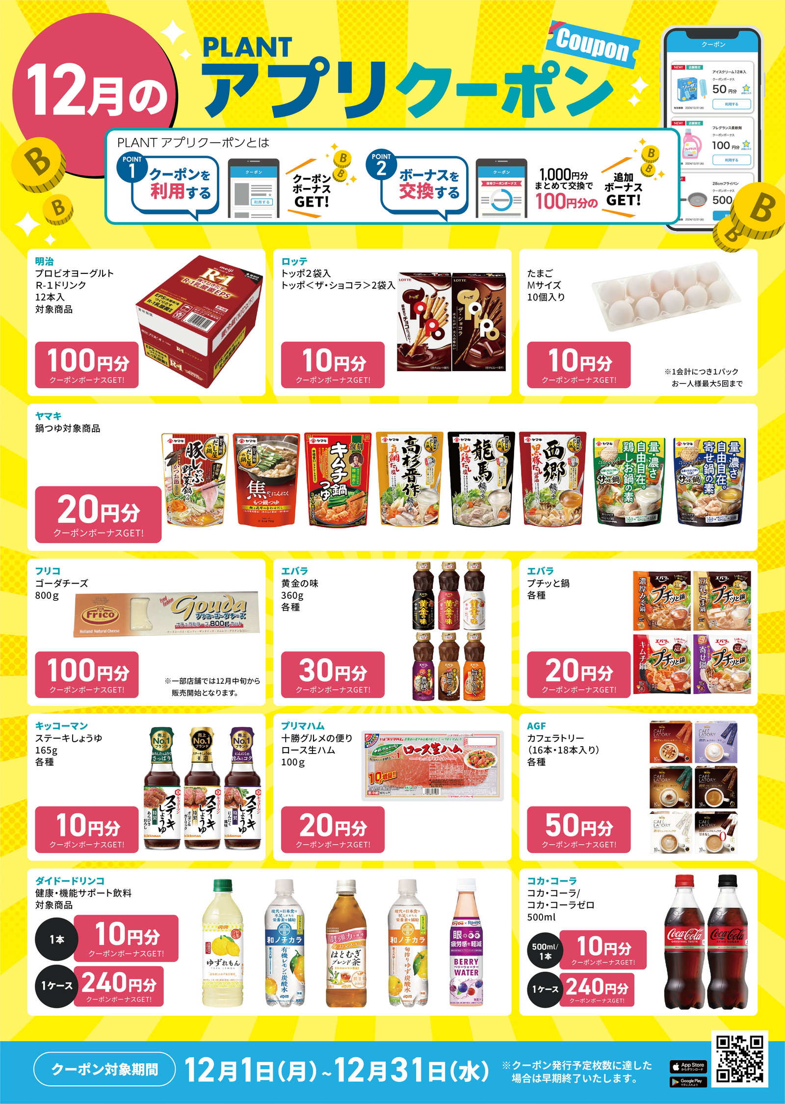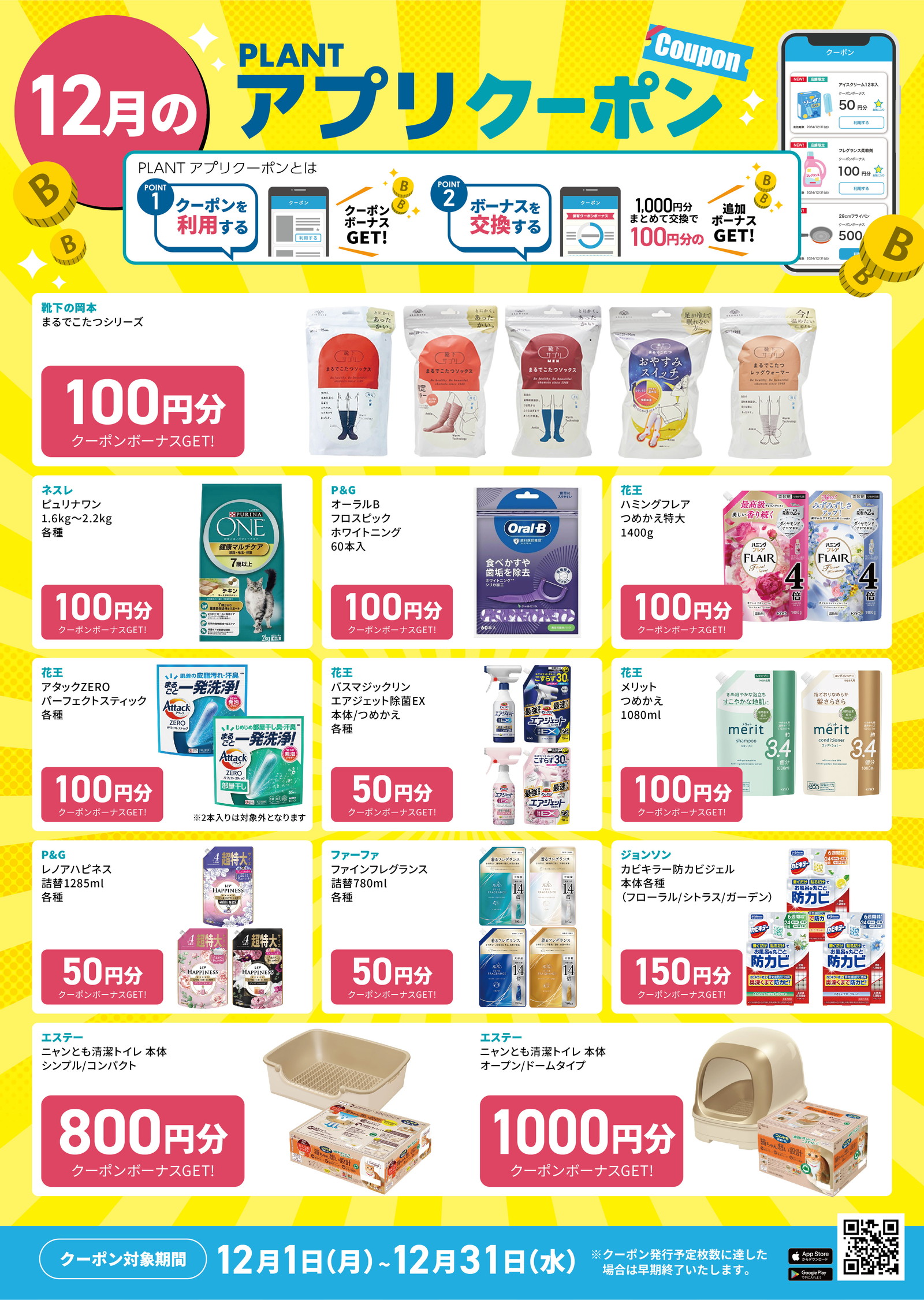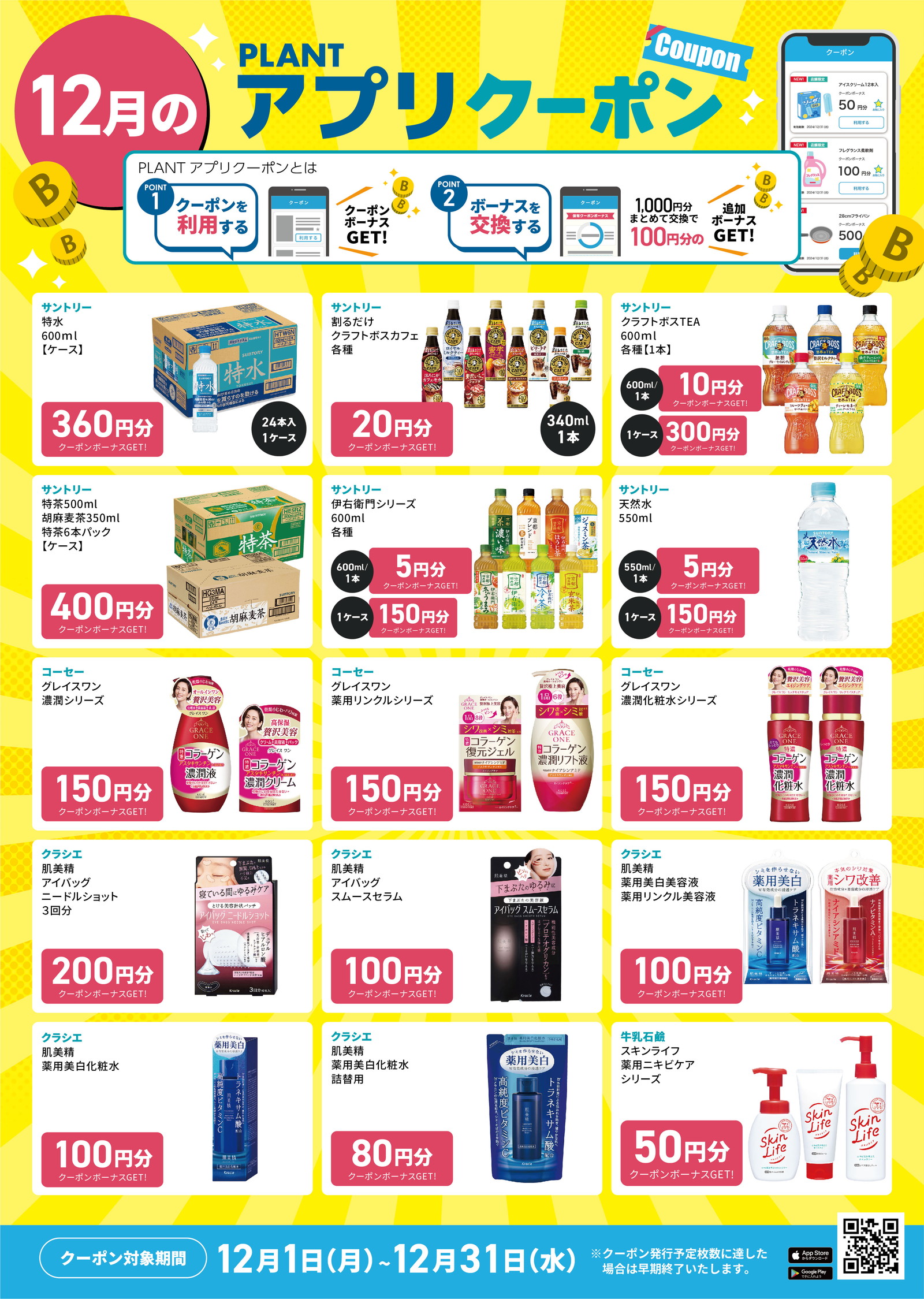 【PLANTアプリ】12月のお得なアプリ限定クーポン