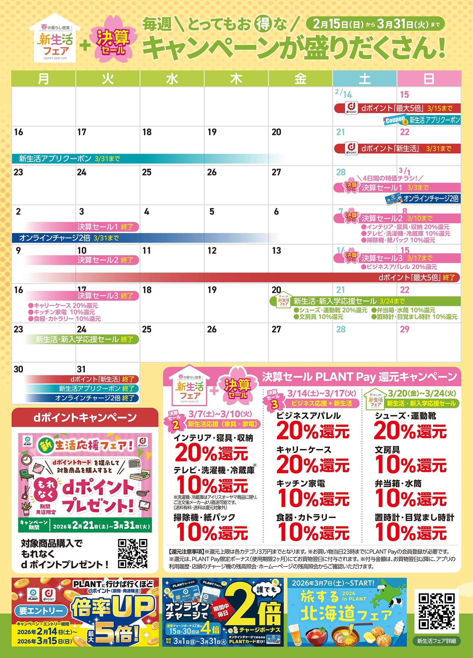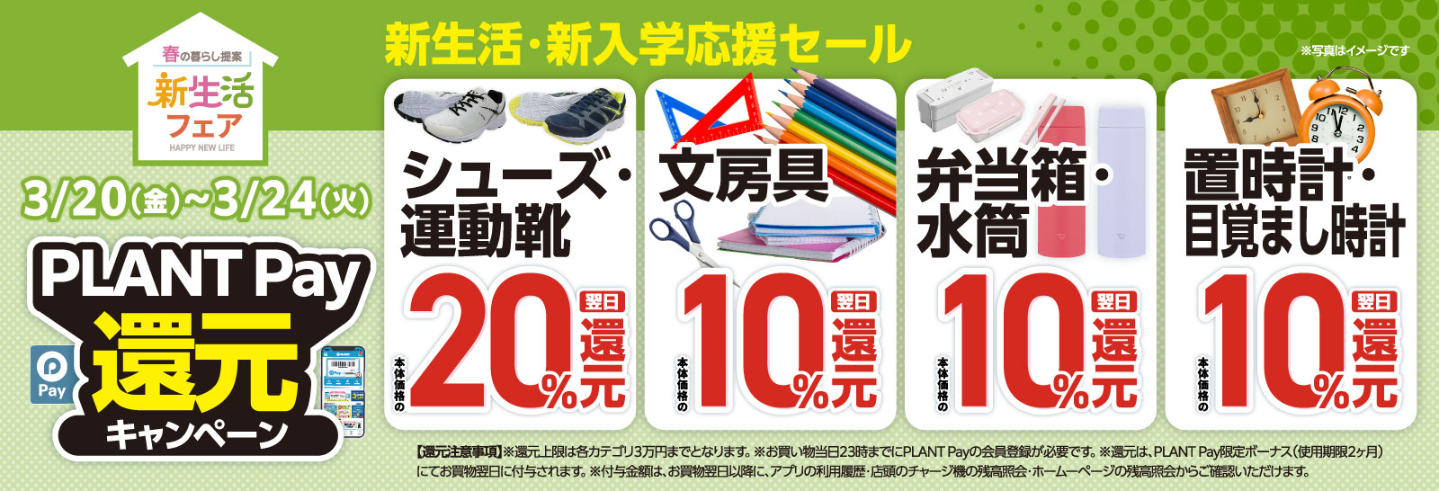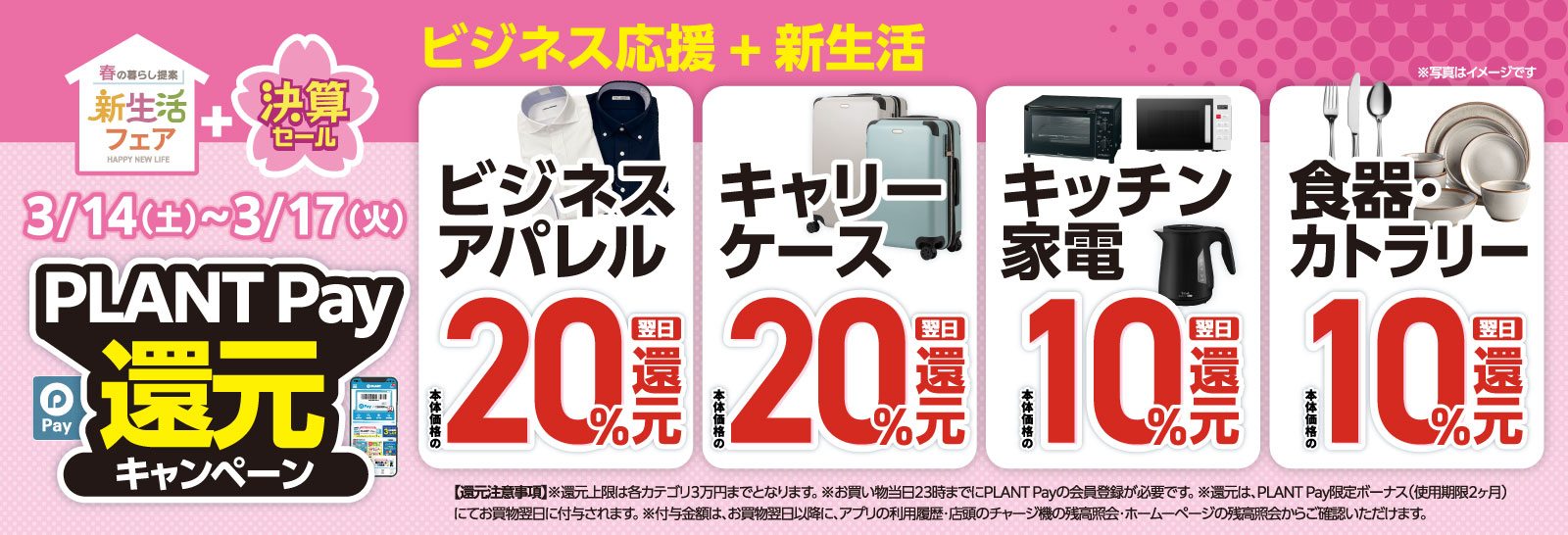 決算セール、新生活フェアを合わせたPLANTPay 還元セールを毎週開催!