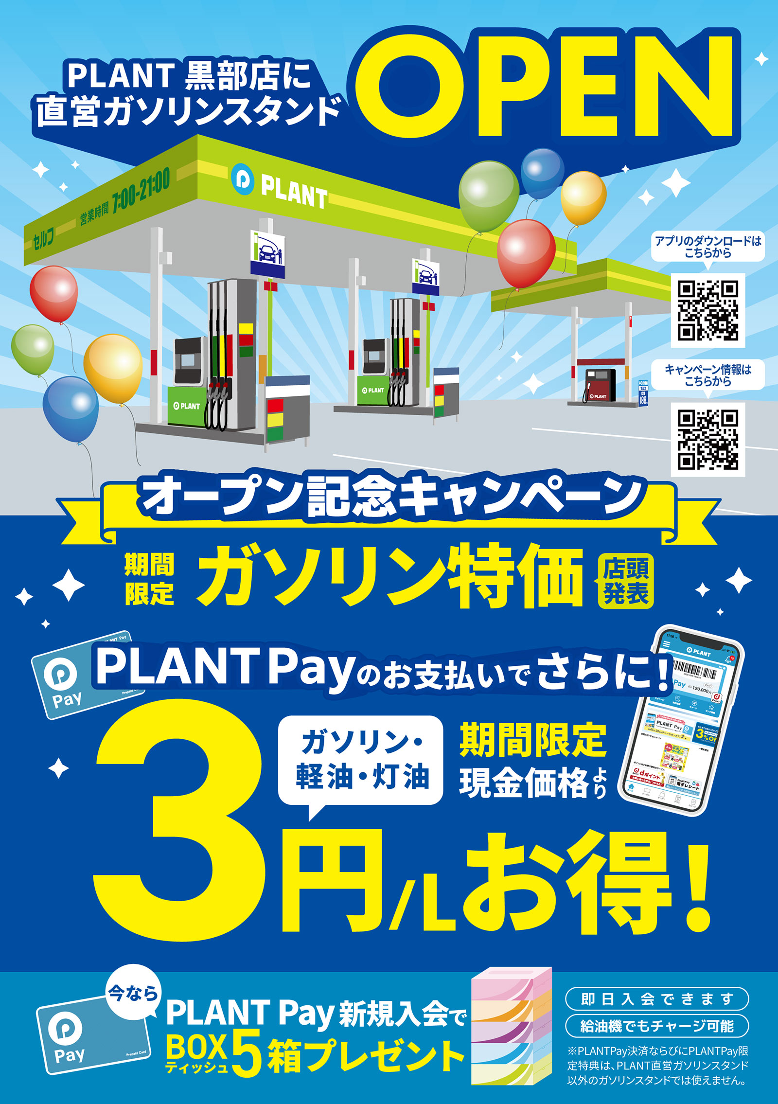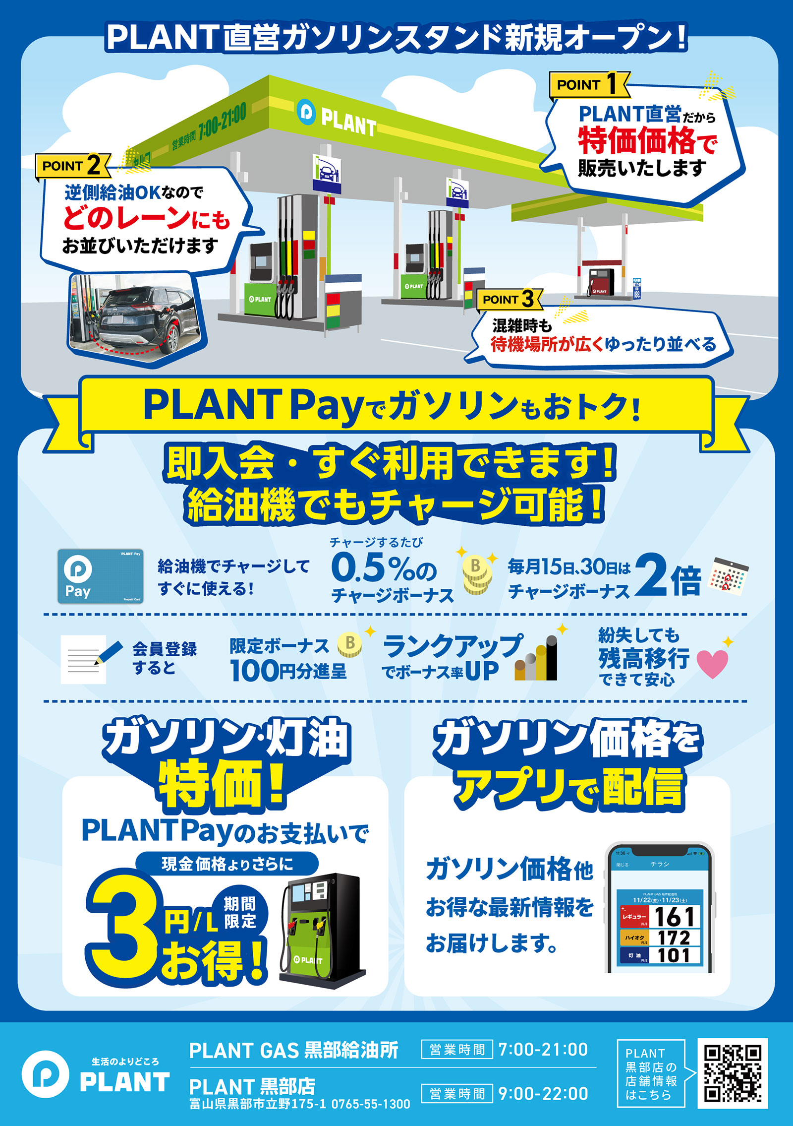 【予告】PLANT黒部店に直営ガソリンスタンド5月初旬新規オープン!