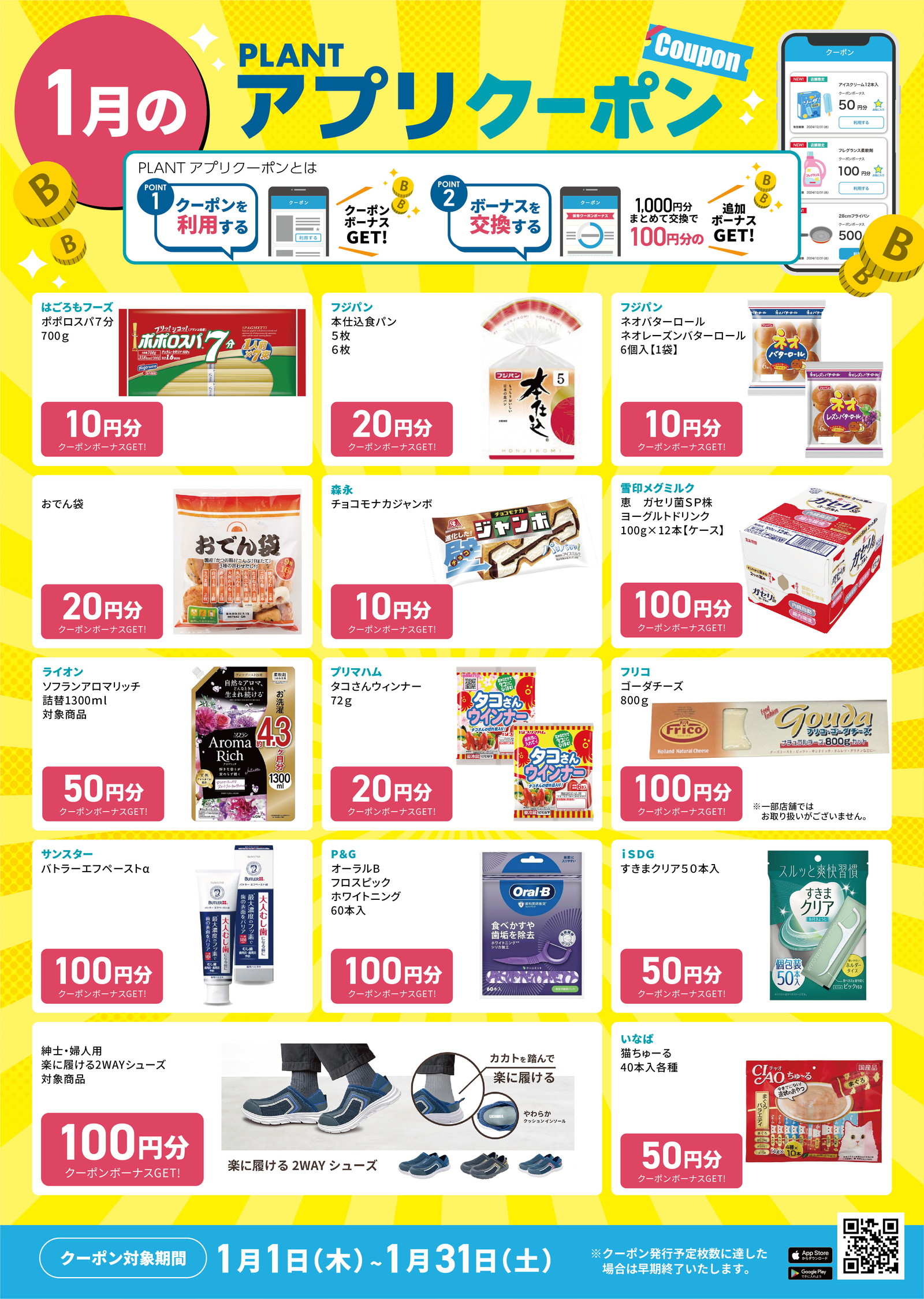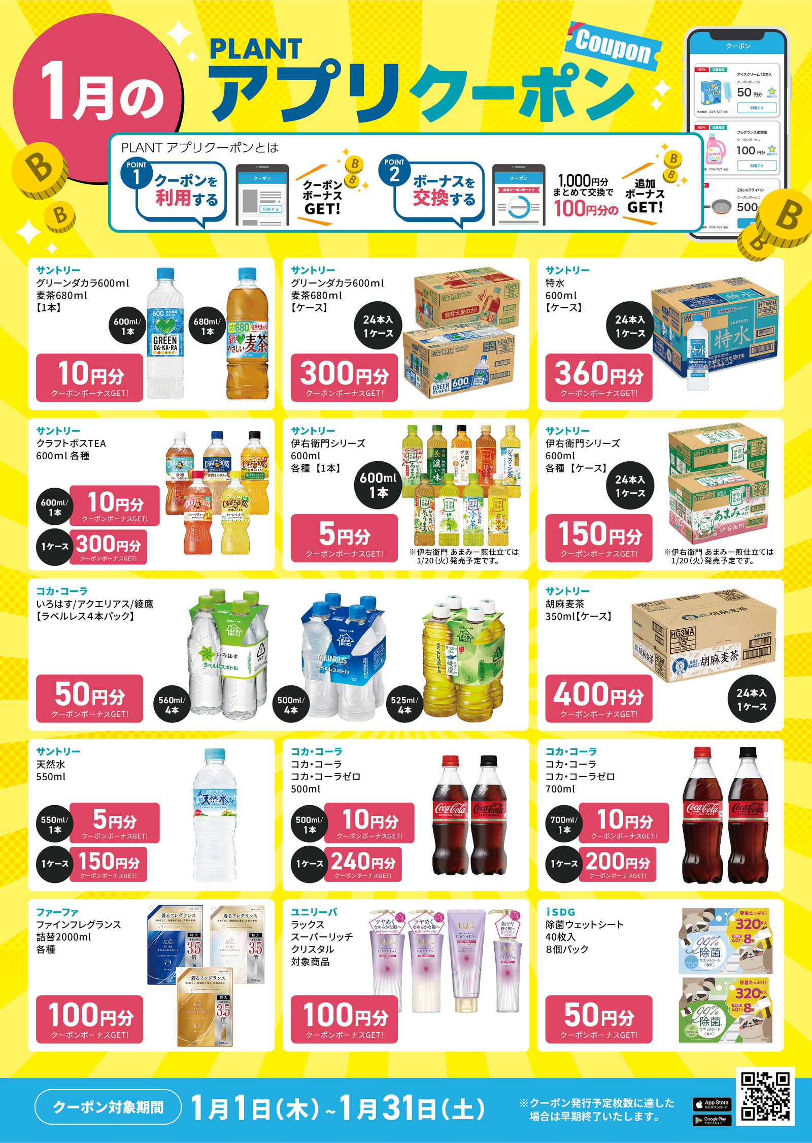 【PLANTアプリ】1月のお得なアプリ限定クーポン