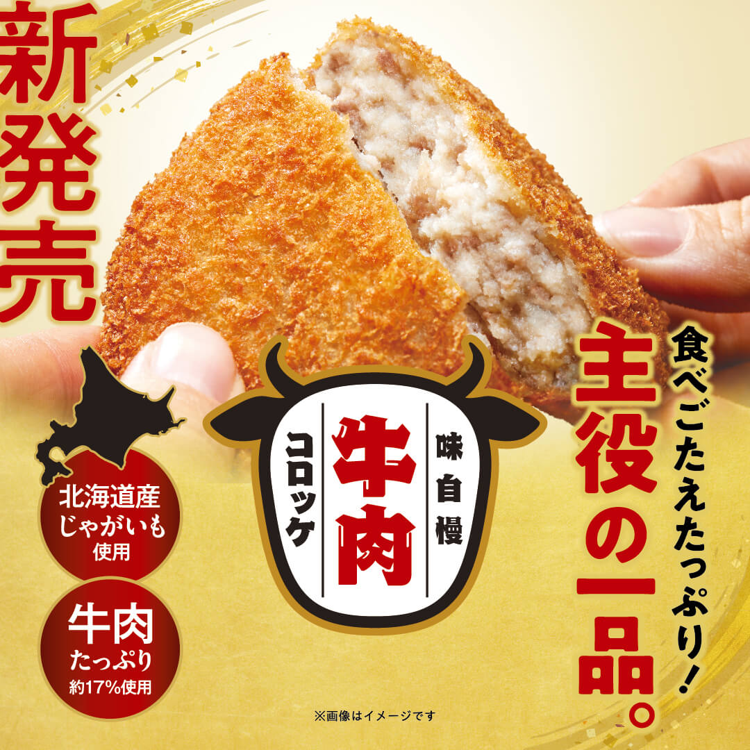 牛肉の旨味と北海道産じゃがいものホクホク食感が自慢のプレミアムコロッケ